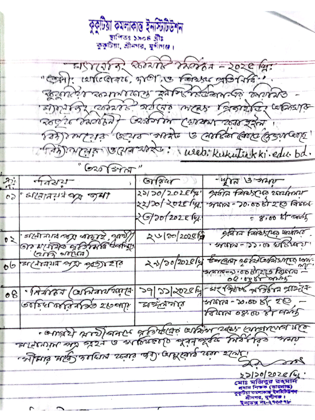 বর্তমান গভর্নিং বডির নামের তালিকা
